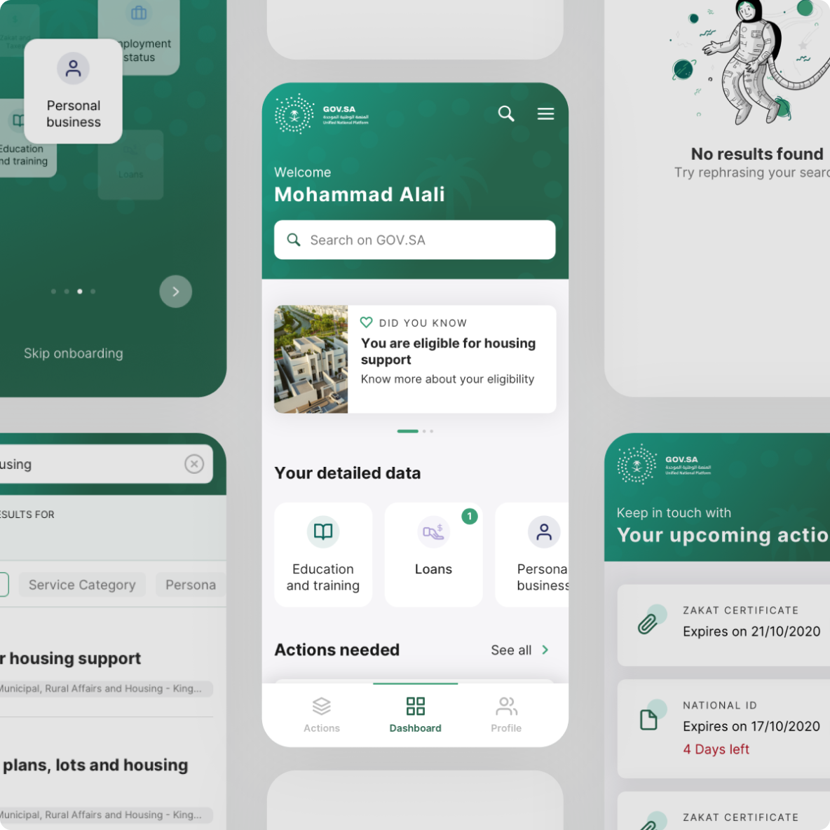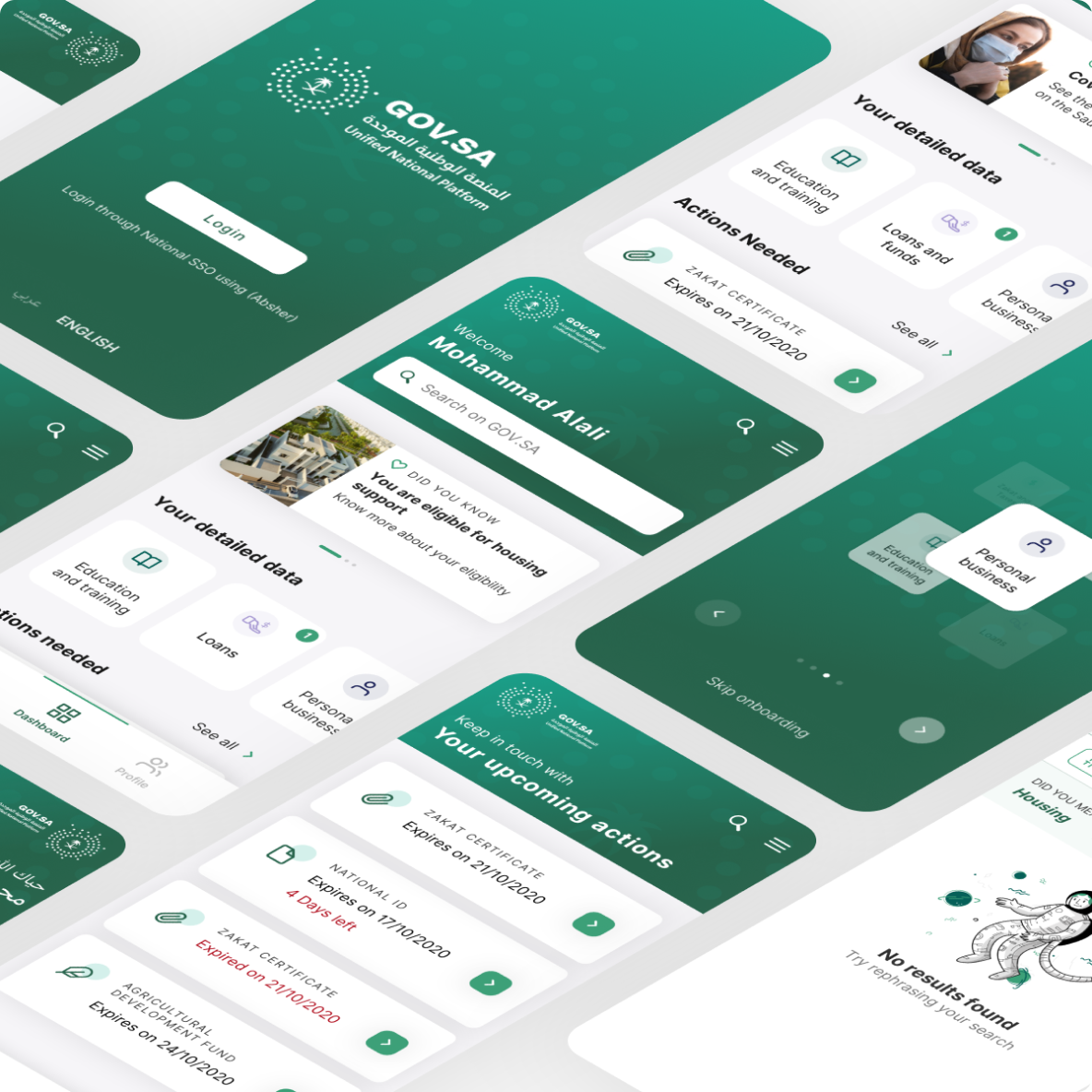 Leading the design of the GOV.SA mobile application, the purpose was to create a one-stop platform, providing users with seamless access to a wide range of government services.
